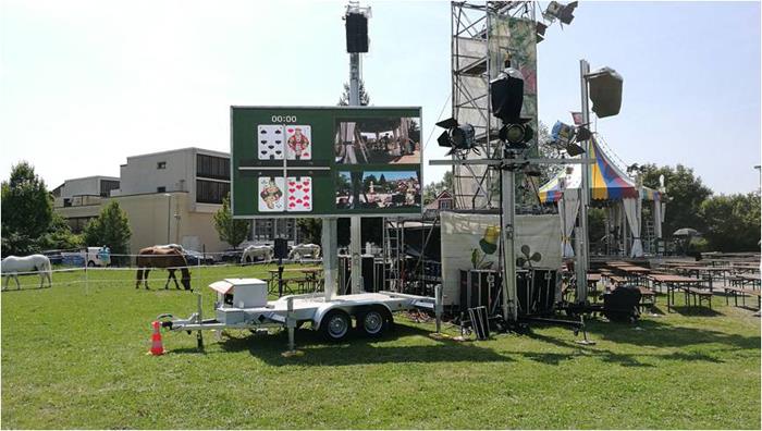 Vonkajší LED displej pripevnený na pojazdnom prívese