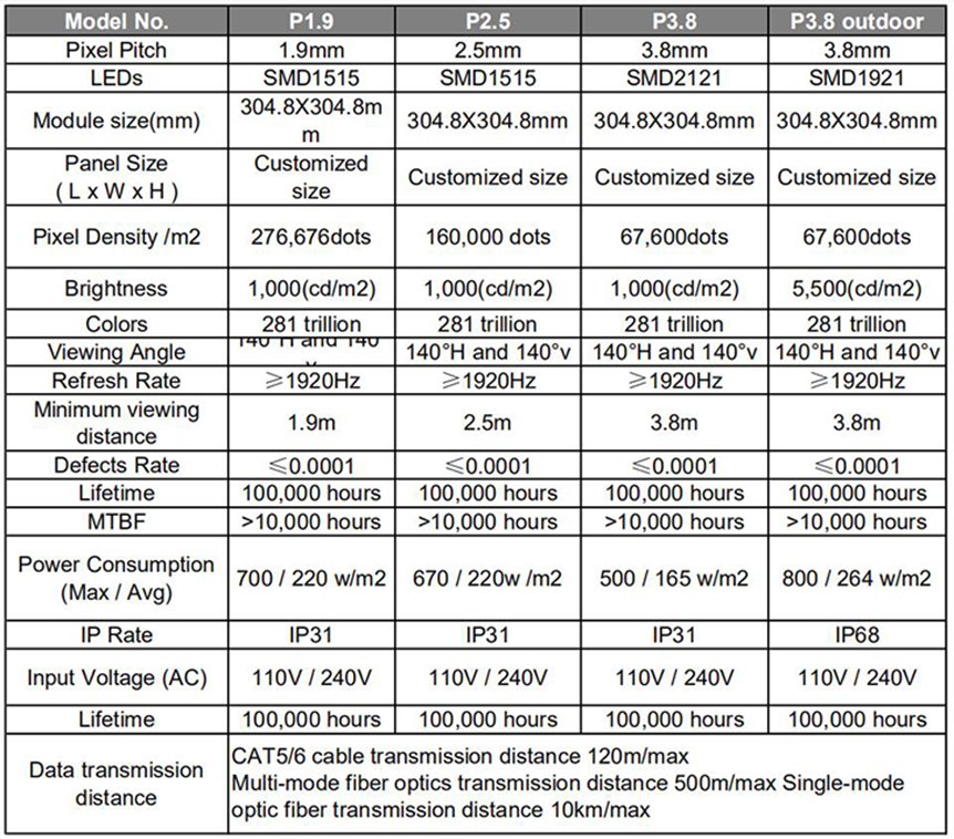 Rozteč pixelov:P1.9 / P2.5 / P3.8